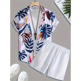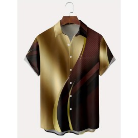 Anime Beach Pattern Men's Chic Gradient Short Sleeve Button Down Shirt, Summer Resort Vacation