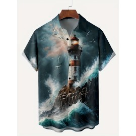 Art Gradient Print Men's Casual Short Sleeve Shirt - Perfect Summer Vacation Resort Wear and Gift for Men