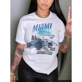 Bear Graphic Print T-shirt, Short Sleeve Crew Neck Casual Top For Summer & Spring, Women's Clothing