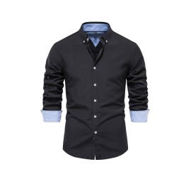 Elegant Men's Long Sleeve Button Up Shirt for Business Meetings and Mature Style