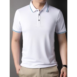 Men's Casual Fashion Printed Stripe Lapel 1/4 Button Short Sleeve Shirt For Men's Golf
