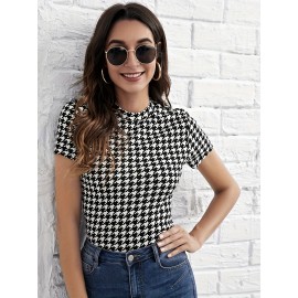 Polka-dot Print Mesh Splicing V-neck Top, Vintage Short Sleeve Top For Spring & Summer, Women's Clothing