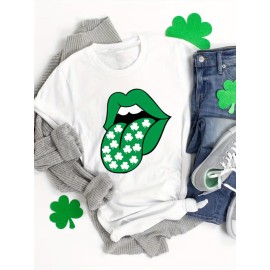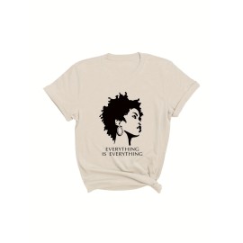 Smiling Face Print Crew Neck T-Shirt, Casual Short Sleeve Top For Spring & Summer, Women's Clothing