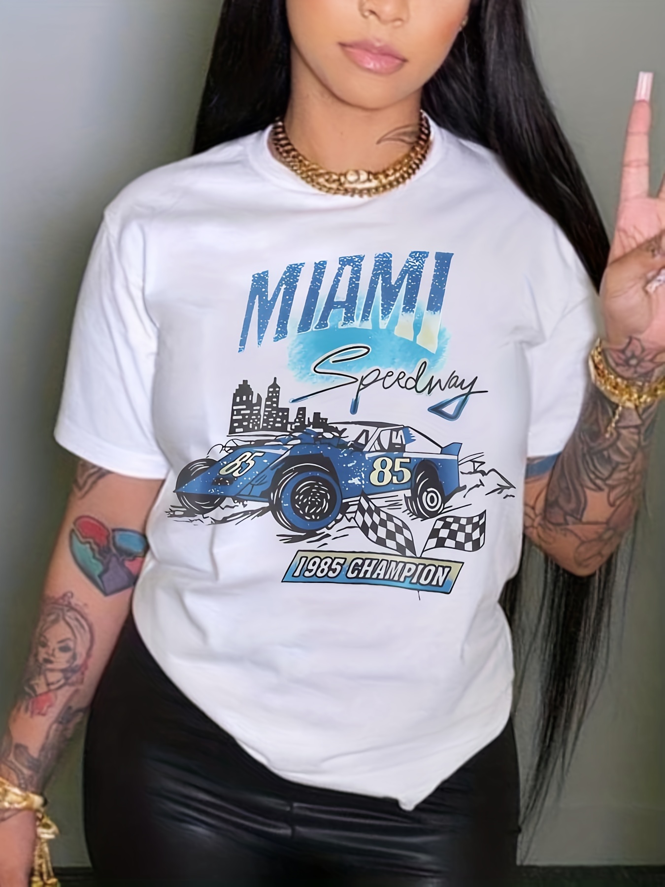 Car Graphic Print T-shirt, Casual Crew Neck Short Sleeve Summer T-shirt, Women's Clothing