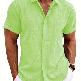 Men's Stylish Loose Solid Shirt, Casual Breathable Lapel Button Up Short Sleeve Shirt Top For City Walk Street Hanging Outdoor Activities