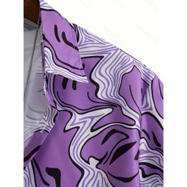 Men's Street Style Trendy Smile Face Pattern Short Sleeve Lapel Shirt for Summer Outdoor Wear
