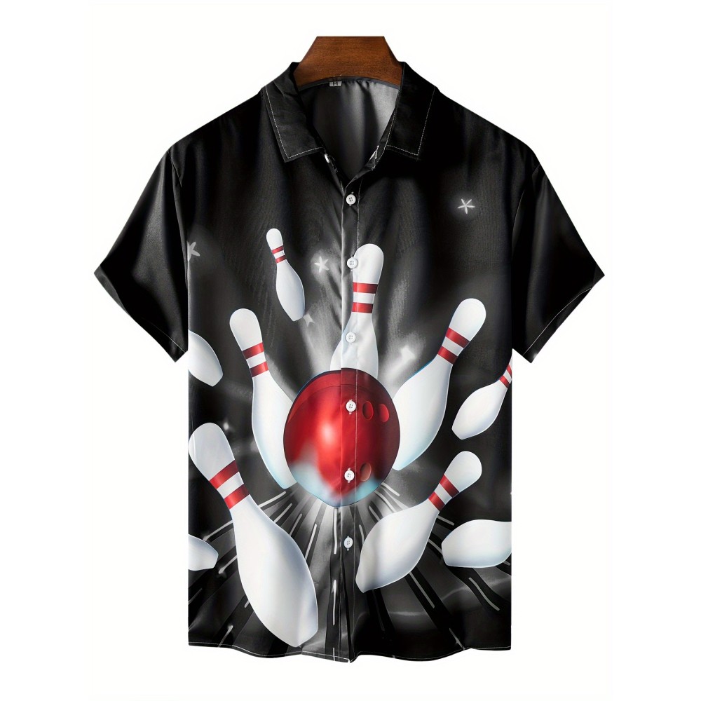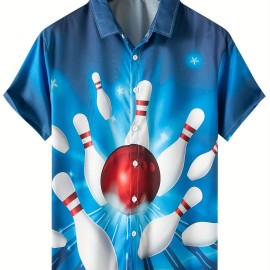 Men's 3D Graphic Print Bowling Shirt - Stylish Short Sleeve Lapel Shirt for Summer Outdoor Activities - Great Gift for Men