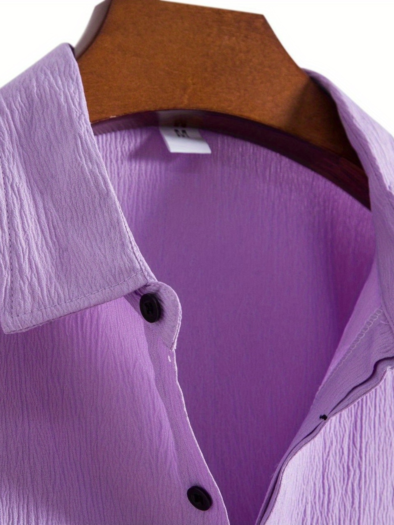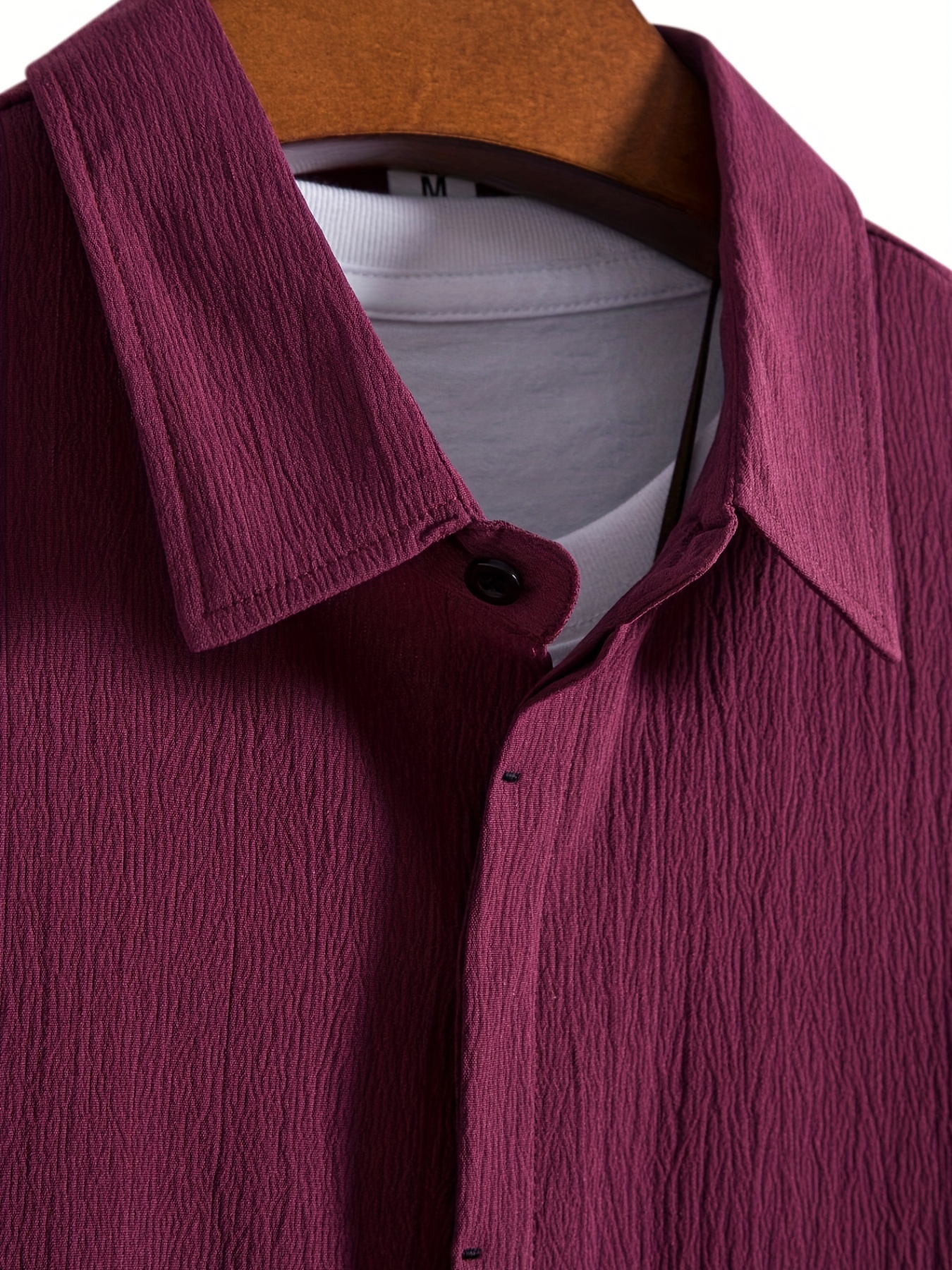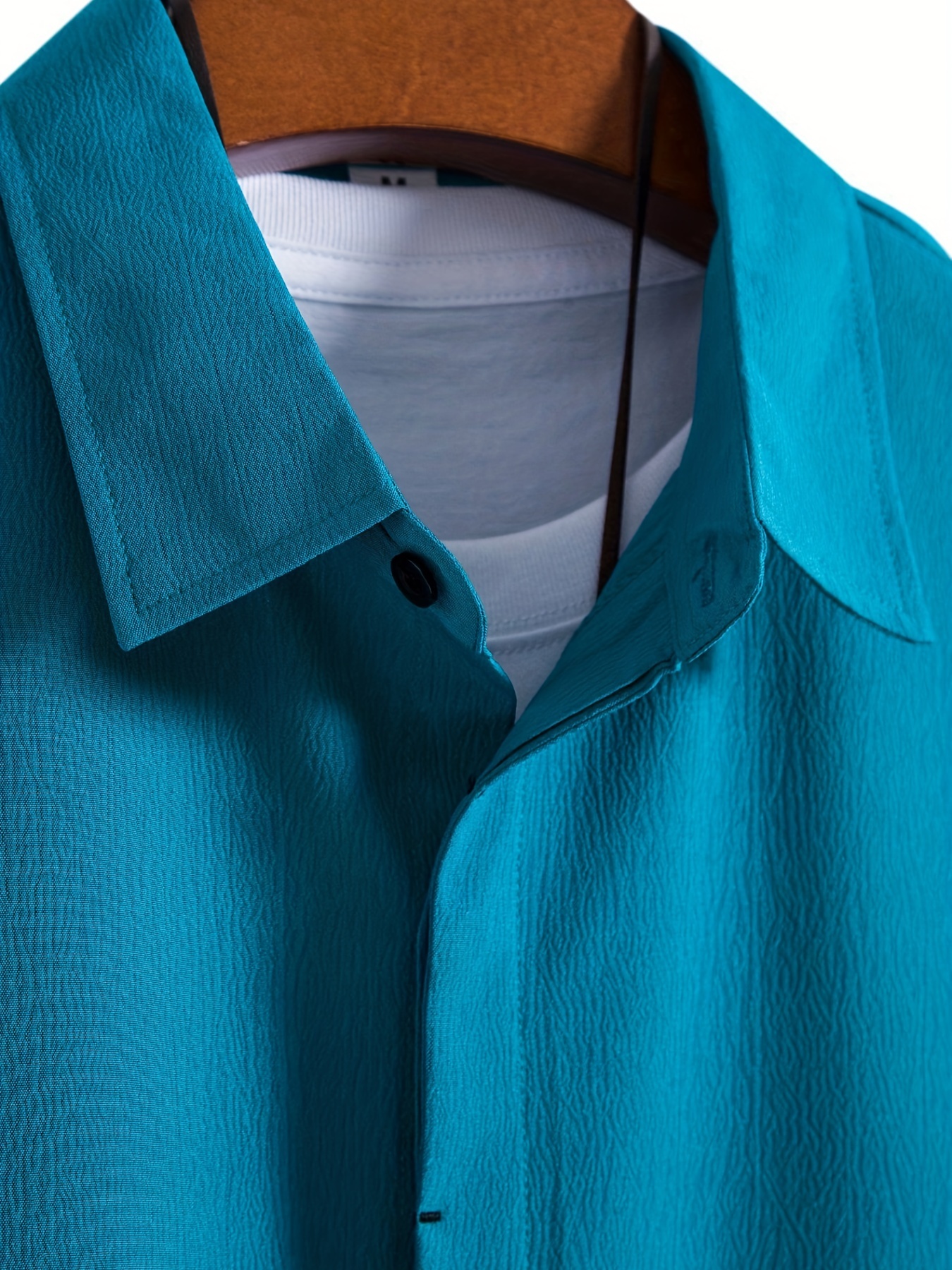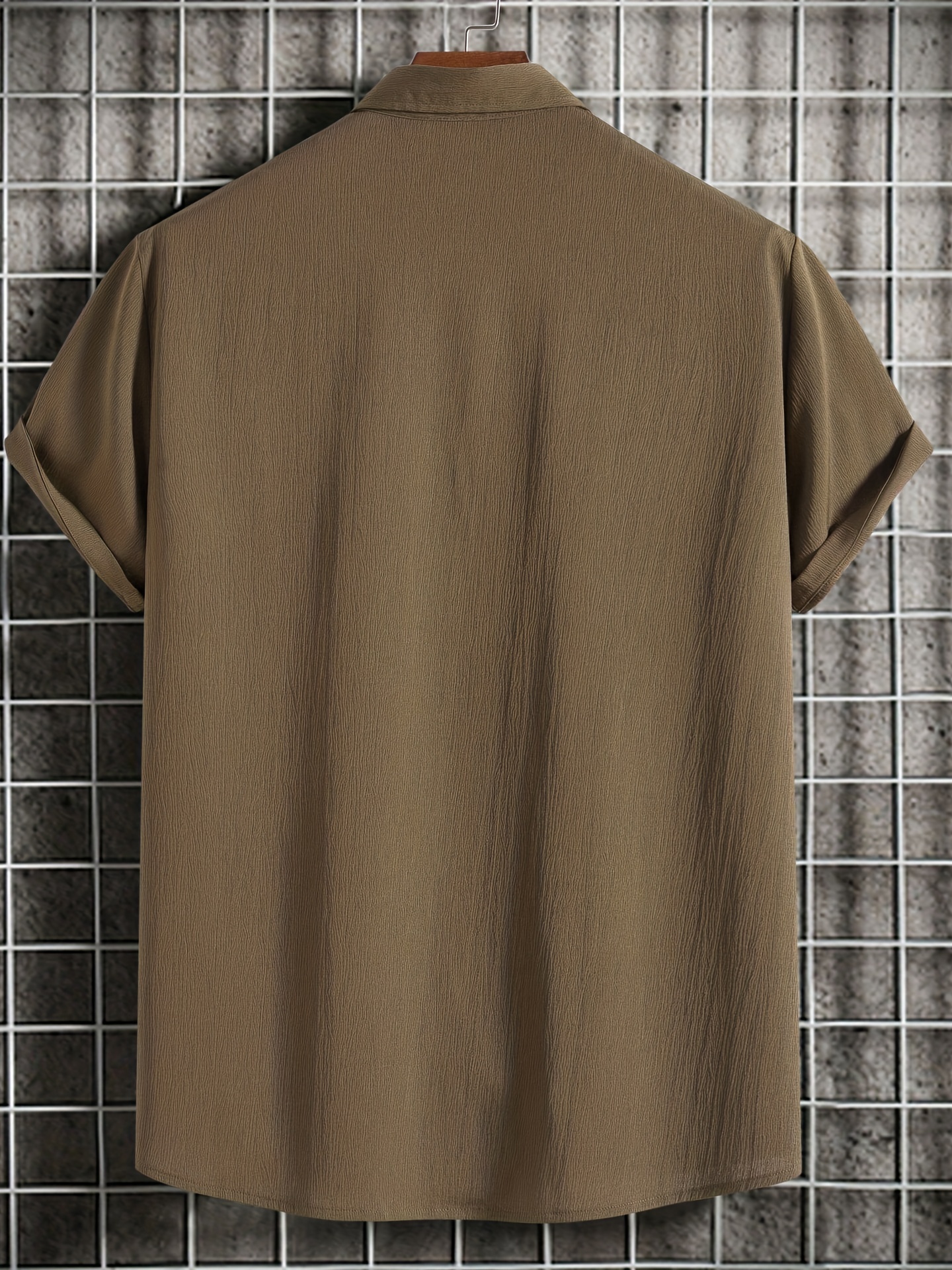 Men's Solid Color Casual Short Sleeve Shirt - Lightweight and Breathable for Summer Vacation and Resort Wear