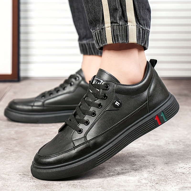 Men's Solid Colour Low Top Skateboard Shoes, Comfy Non Slip Durable Lace Up Casual Sneakers For Men's Outdoor Activities